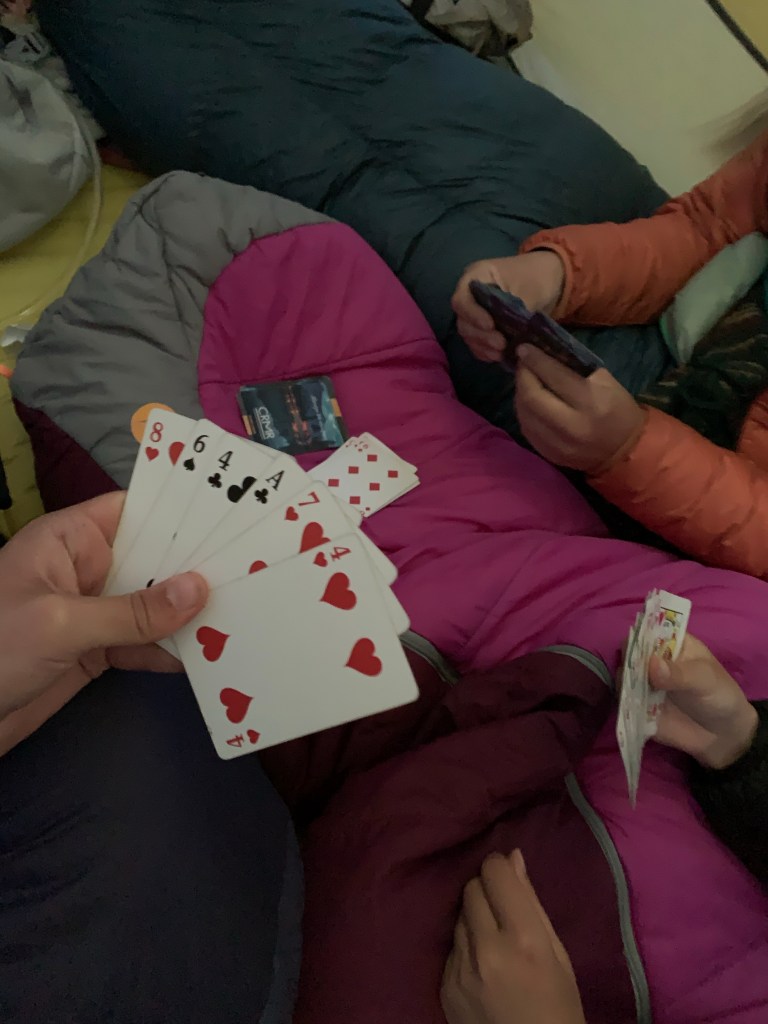 And if you find your batteries drained, or if you have read every book your Kindle has to offer, it’s always fun to have a deck of cards handy! We enjoyed playing cards in the tent while escaping some of the rainy weather.