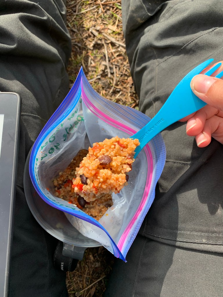 Other meal ideas I’ve seen on the trail are bento boxes, hiker charcuterie boards, or thermoses of soup and chili. One determined couple even filled a spare water bladder with red wine for an overnight trip.