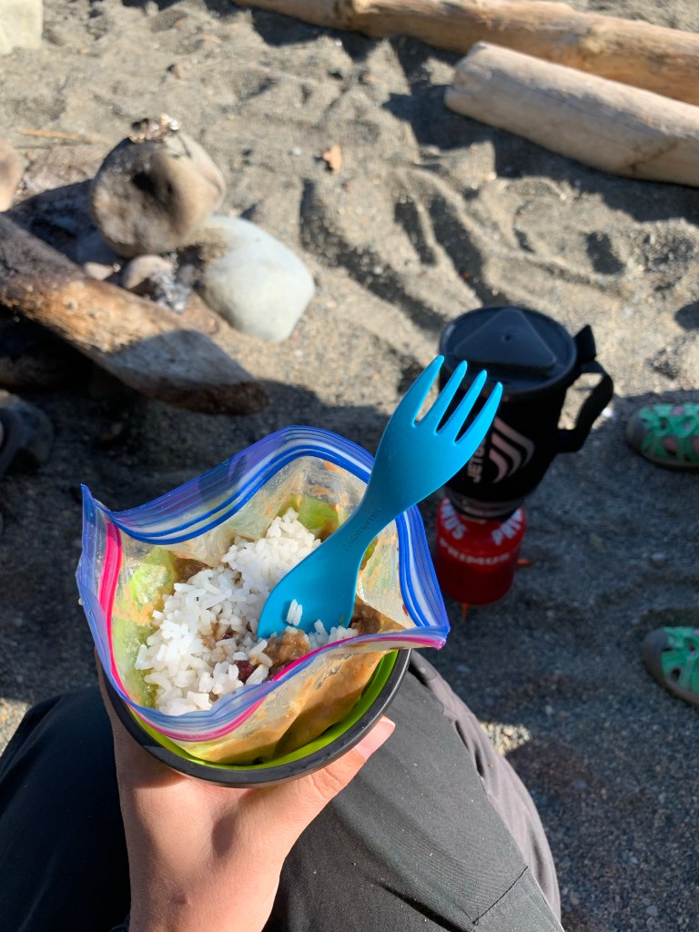 The best perk to meals that don’t have to be heated is that you can eat on the go. You don’t have to take the time to set up your stove and boil water, you could even snack while you’re hiking. Keep trail mix in an accessible pocket so you can snack when you stop. I passed a woman on the West Coast Trail who insisted that her favorite way to enjoy her morning coffee was while hiking.