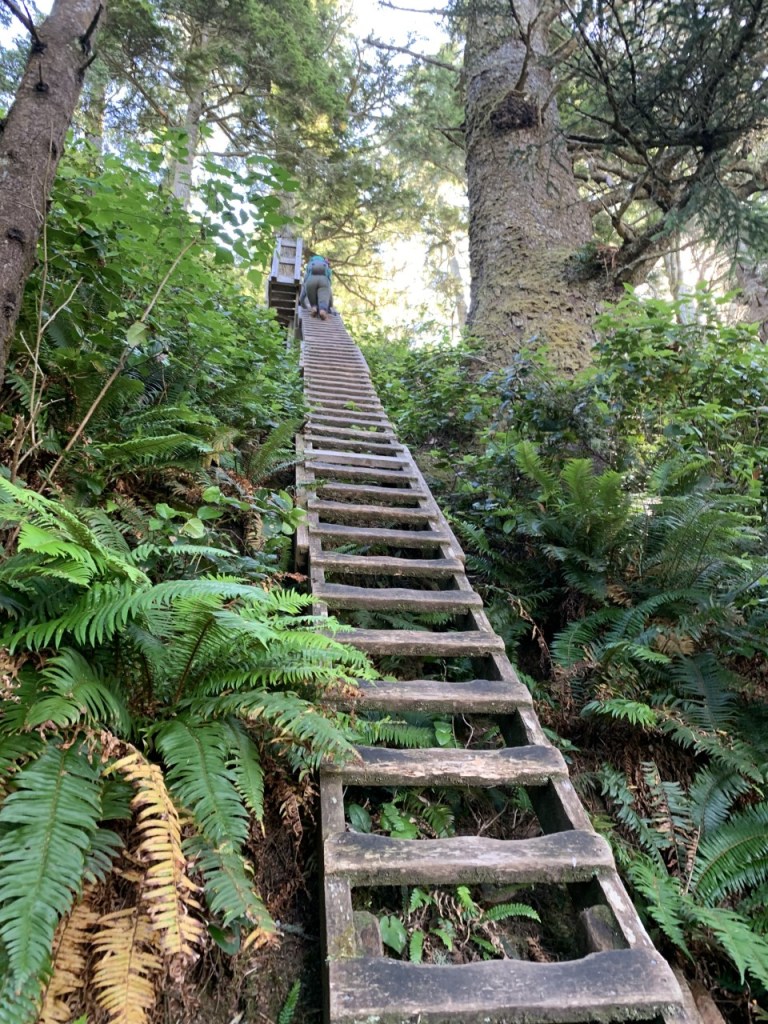 Lindsay tackling a ladder on the West Coast Trail