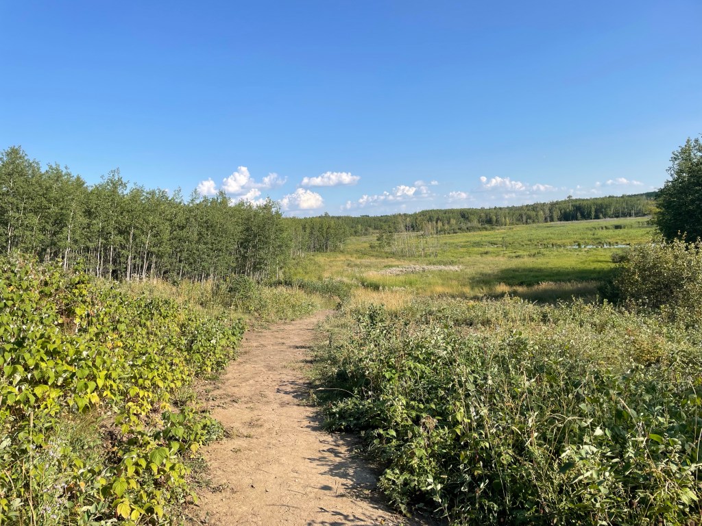 After being in the car for three hours, a longer hike sounded like a good way to stretch our legs. We decided to give the Shirley Lake Trail a try. It is about 11kms long and offers views of many marshes, ponds, and lakes. Perfect for observing waterfowl, and the signage also stated that it was great spot to see elk and bison.