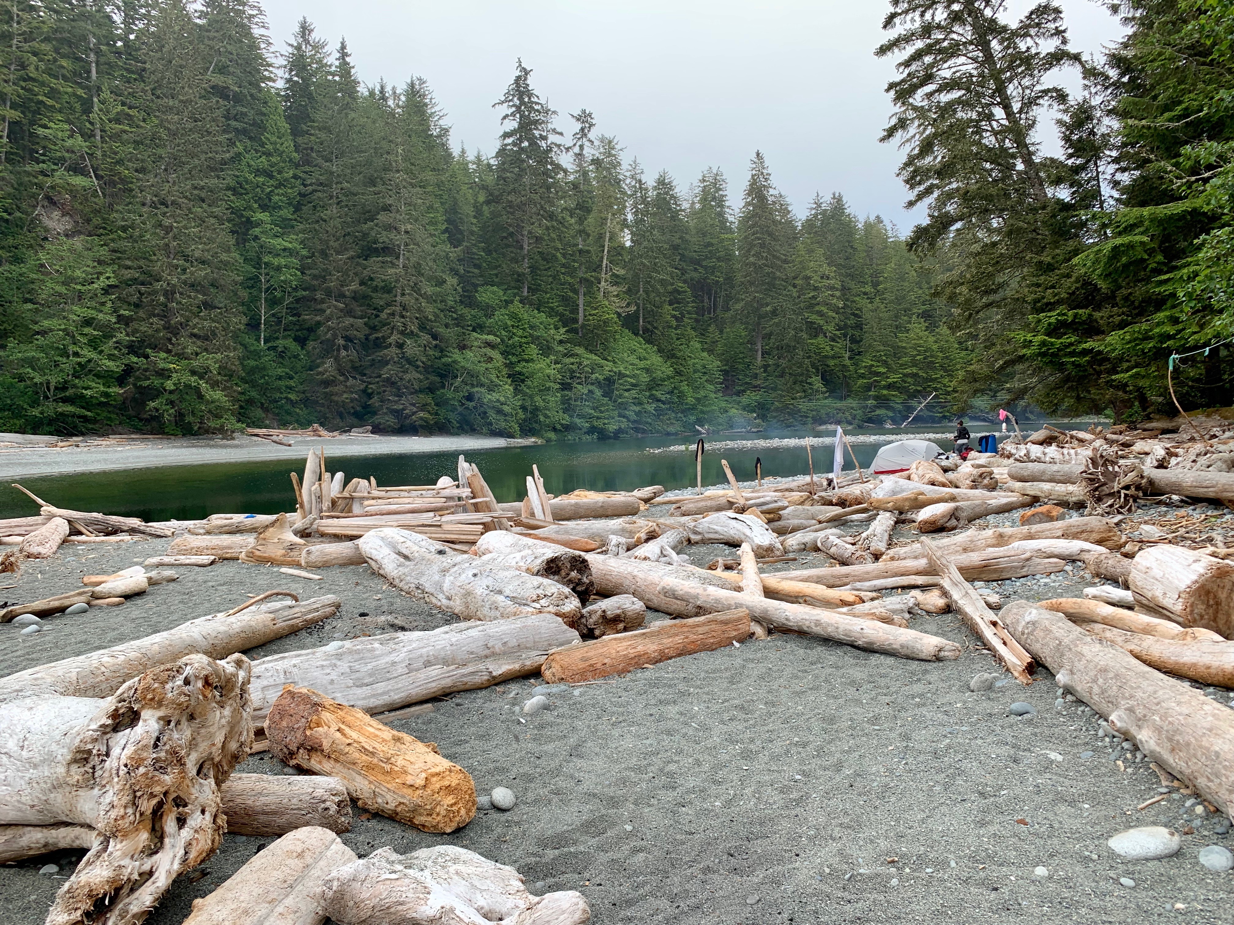 KM 53 Walbran Creek. Yay! You are now done the worst of the mud and ladders! Great place for swimming, beautiful campsite.