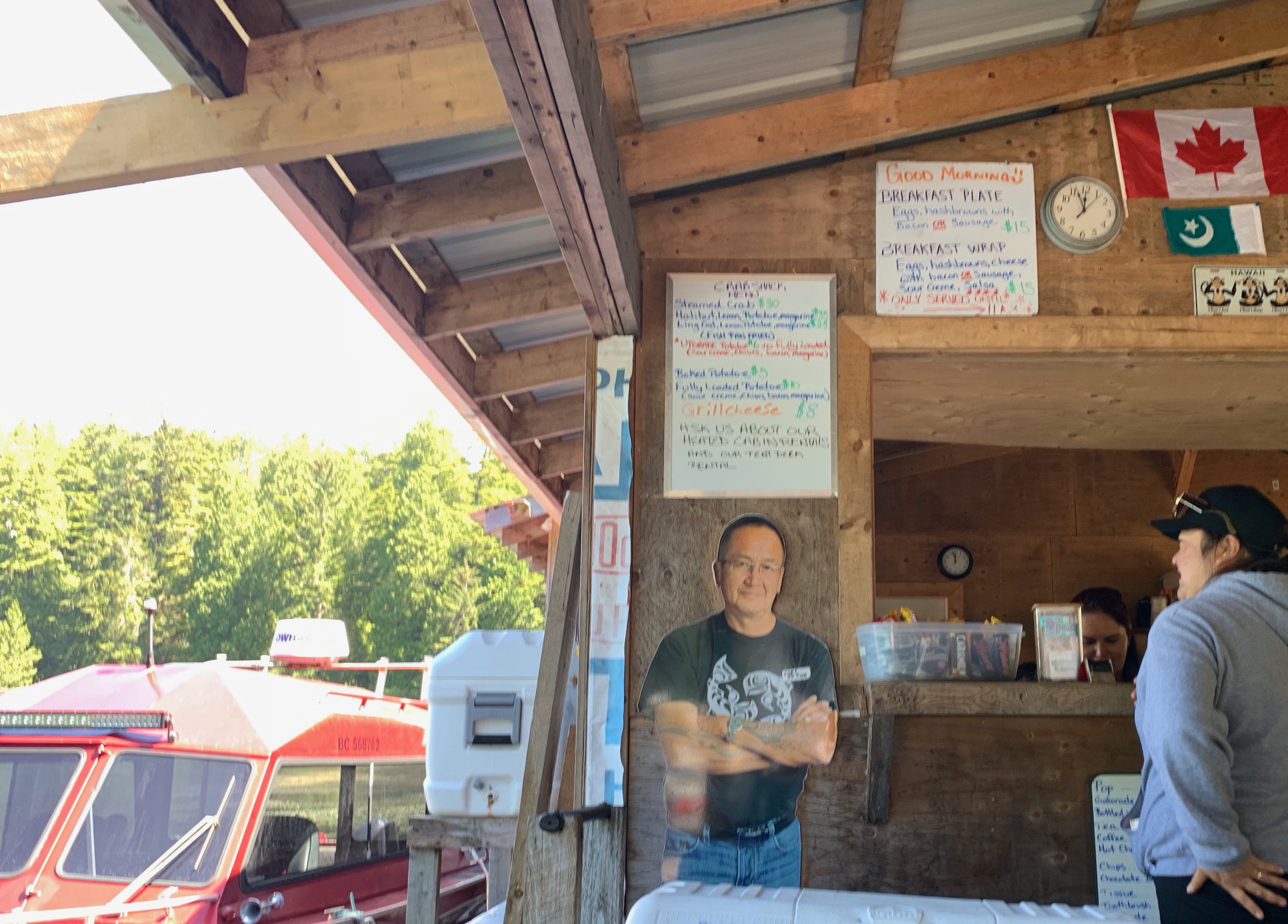 KM 33 Nitinaht Narrows, delicious food. Must be crossed by boat (Ferry operates between (9:30 am and 4:30). Do not drink the water as it has a high salt content.
